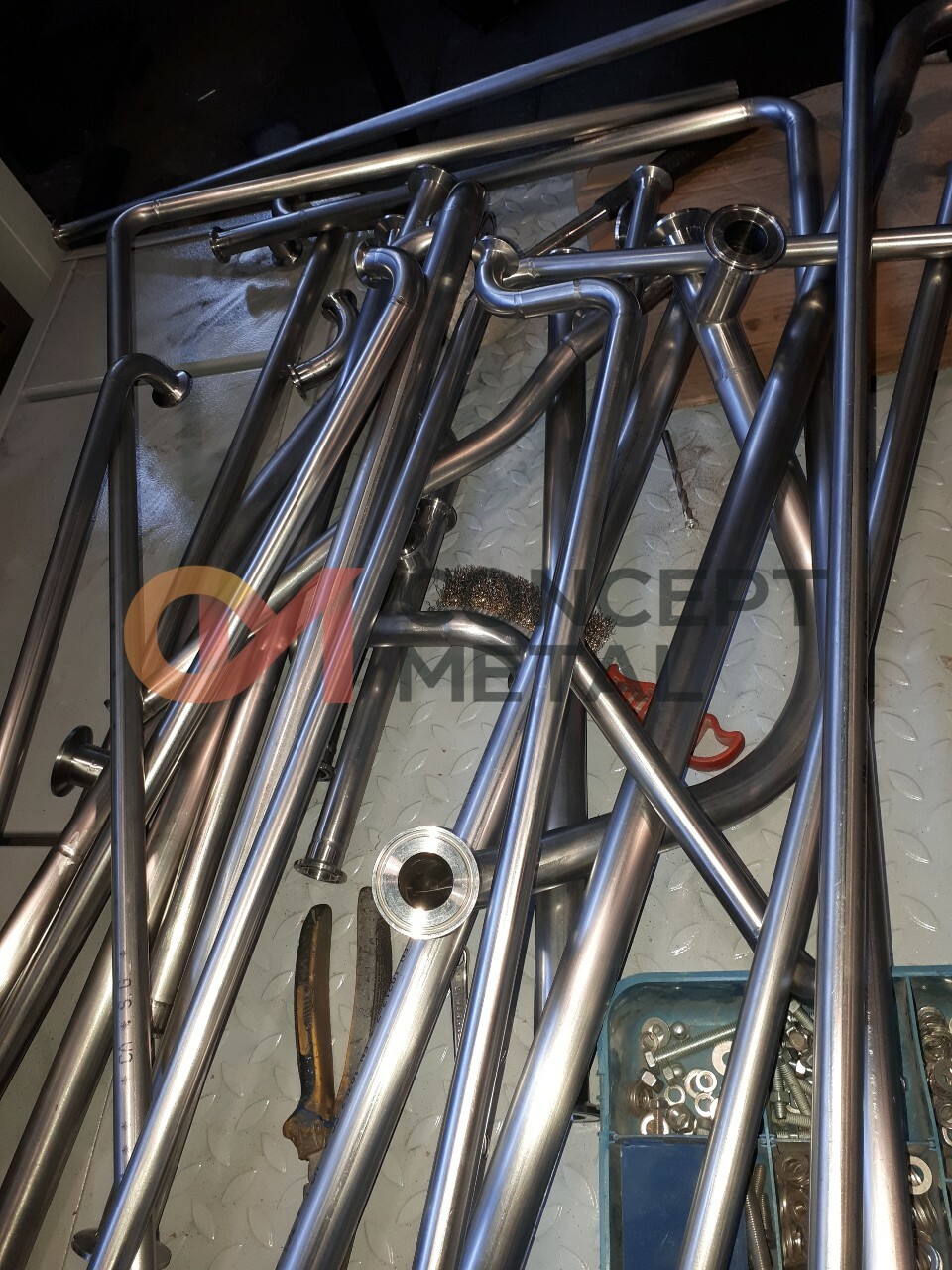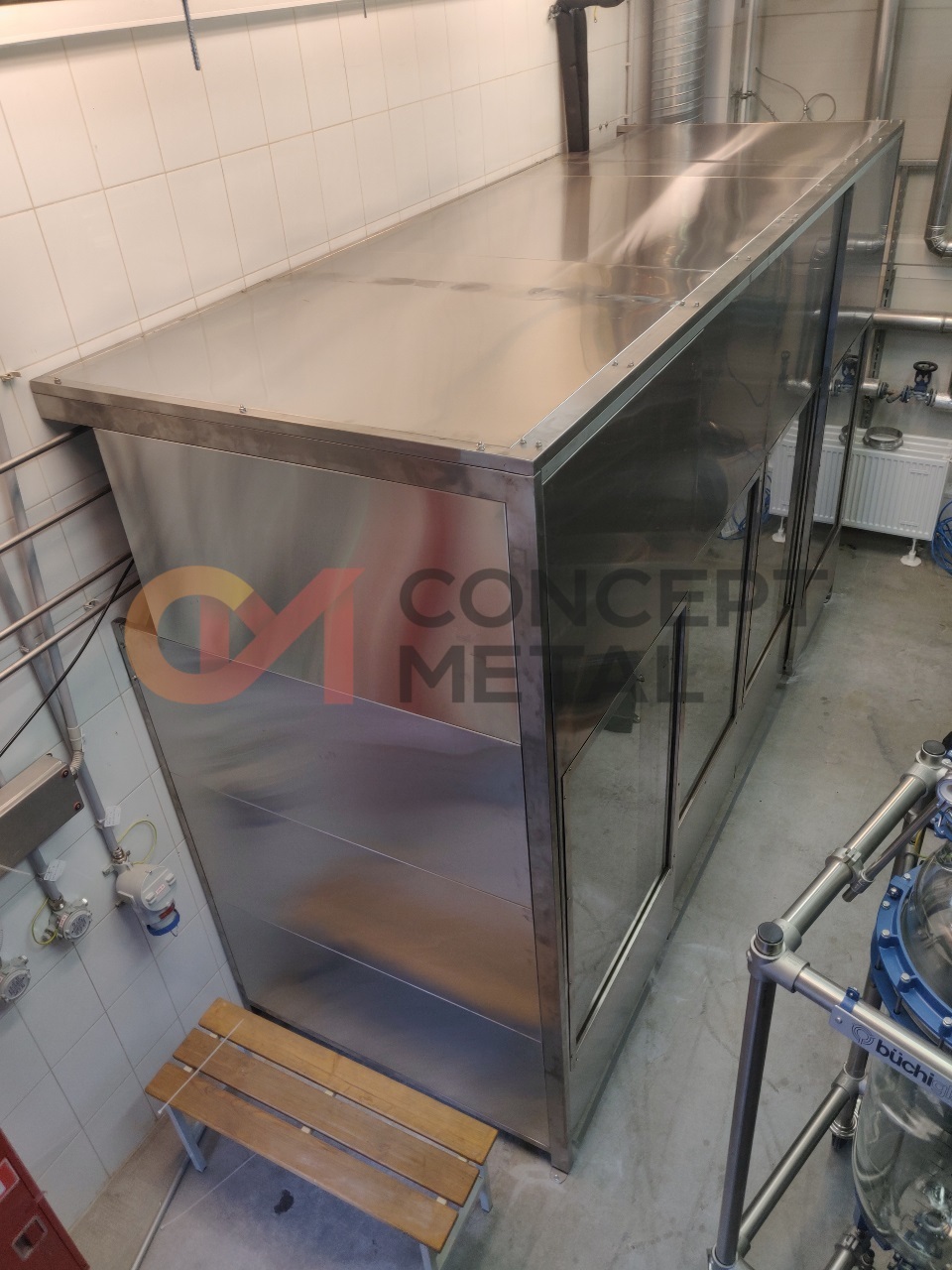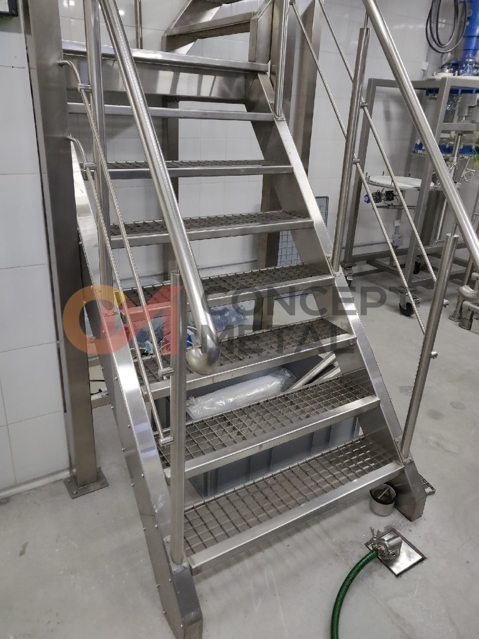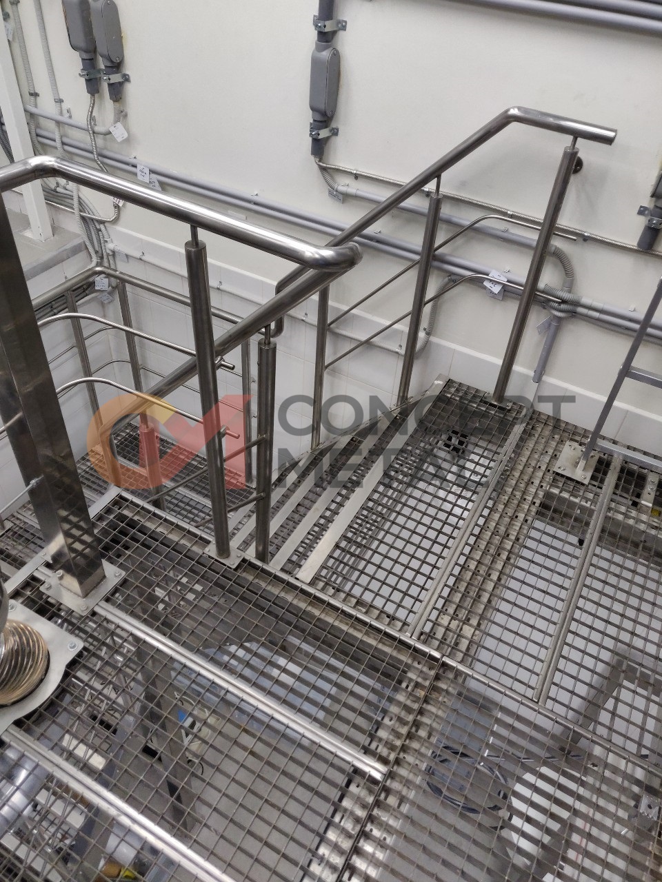 • Нерж. изделия для фармацевтических производств (площадки обслуживания, выкатные лестницы, обвязка нерж. трубами)